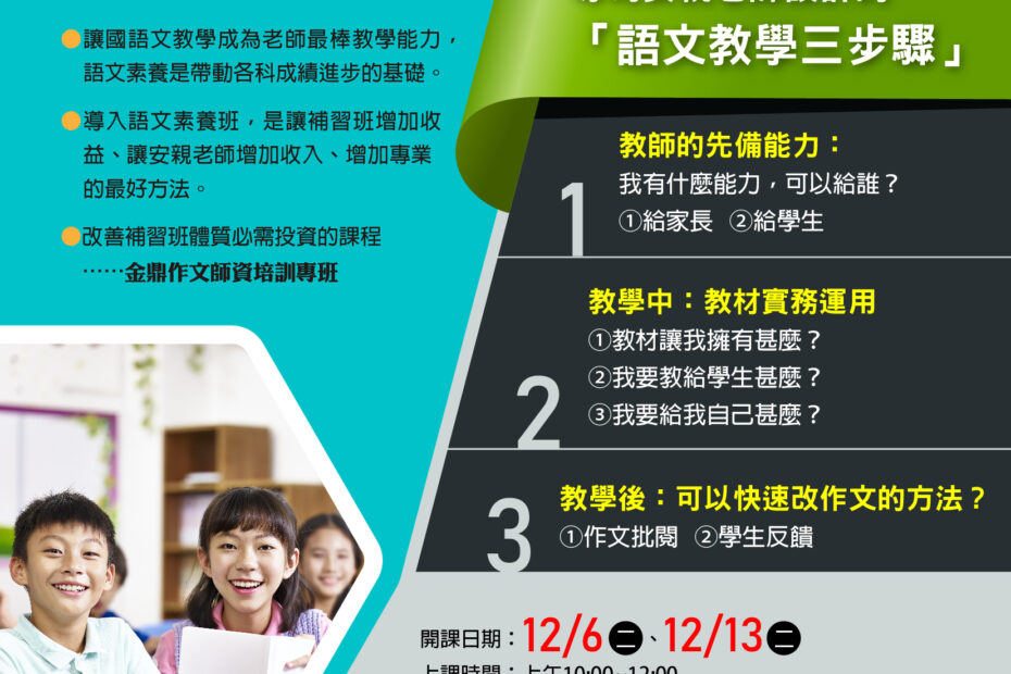 金鼎作文師資培訓專班開始報名囉~【專為安親老師設計… Read More »【語文教學三步驟】金鼎作文師資培訓專班