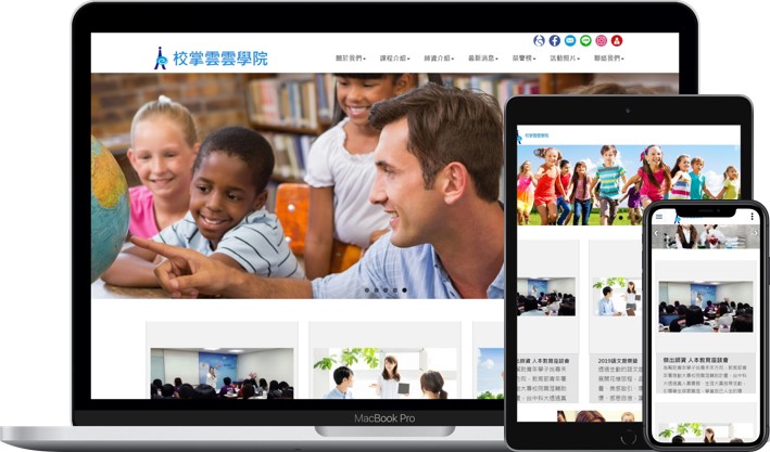校掌雲的響應式網站設計,讓同一個網站跨越不同裝置及平台瀏覽時,可自動調節瀏覽器螢幕解析度。(請外部網頁設計公司製作一個響應式網站至少要5~6萬以上)